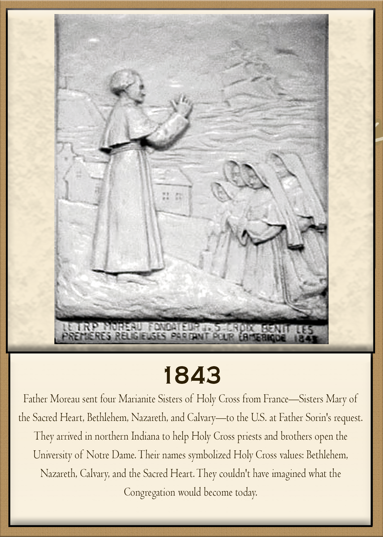 The Sisters of the Holy Cross were founded as part of the wider Holy Cross family and became one of the most significant communities of Catholic women religious in the United States. Their arrival in Indiana in the 1840s helped shape the development of Catholic education in the region and established a lasting connection with Saint Mary’s College and the University of Notre Dame.